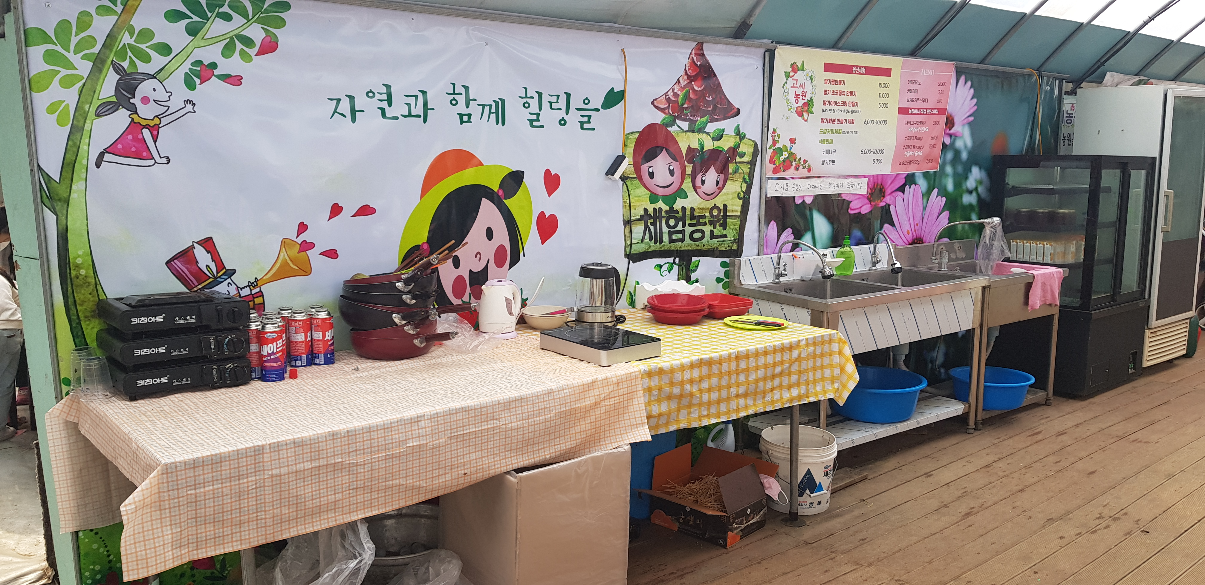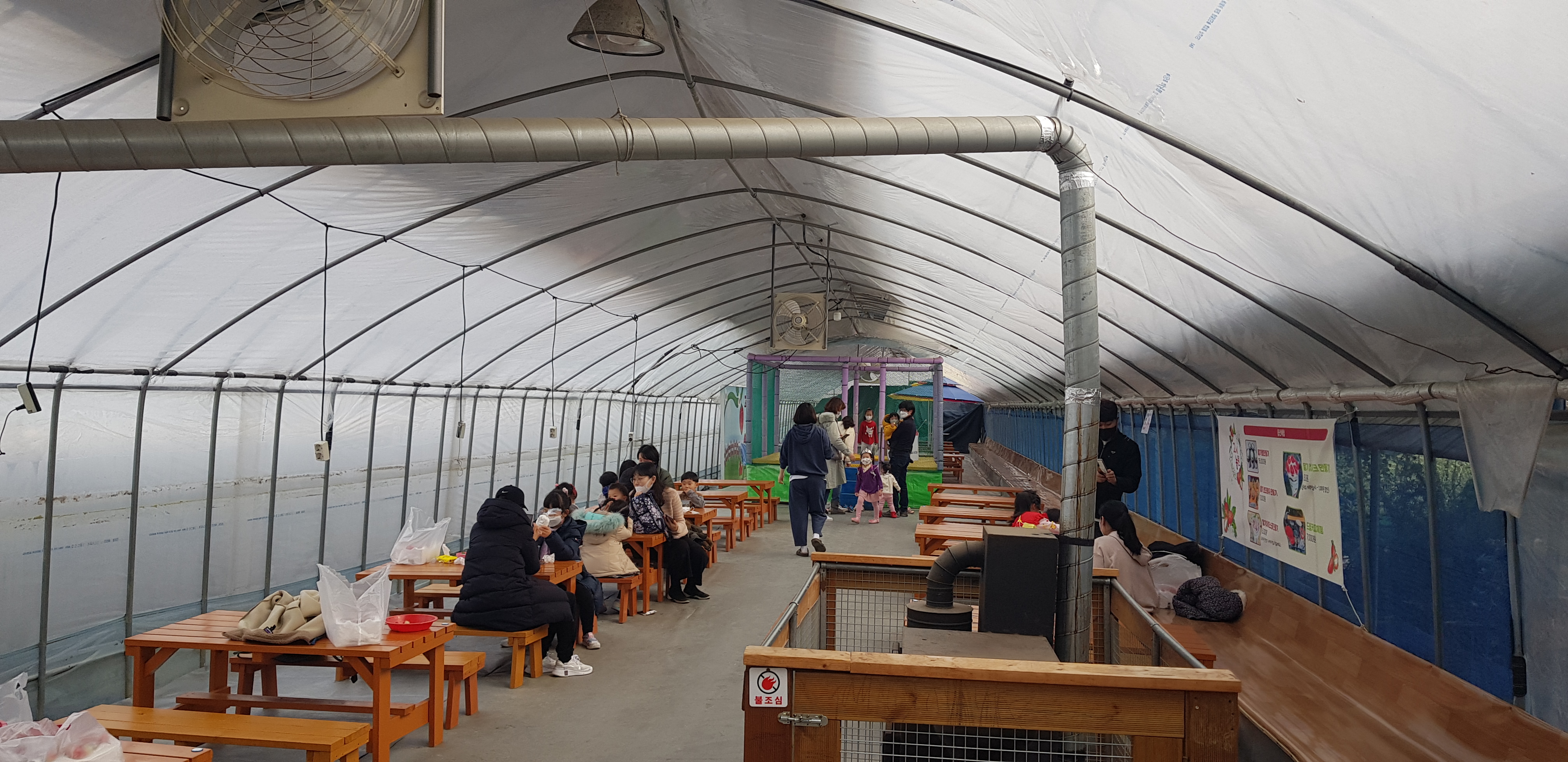 딸기를 다 따면, 옆 비닐하우스에서 또다른 옵션 체험을 할 수 있습니다.