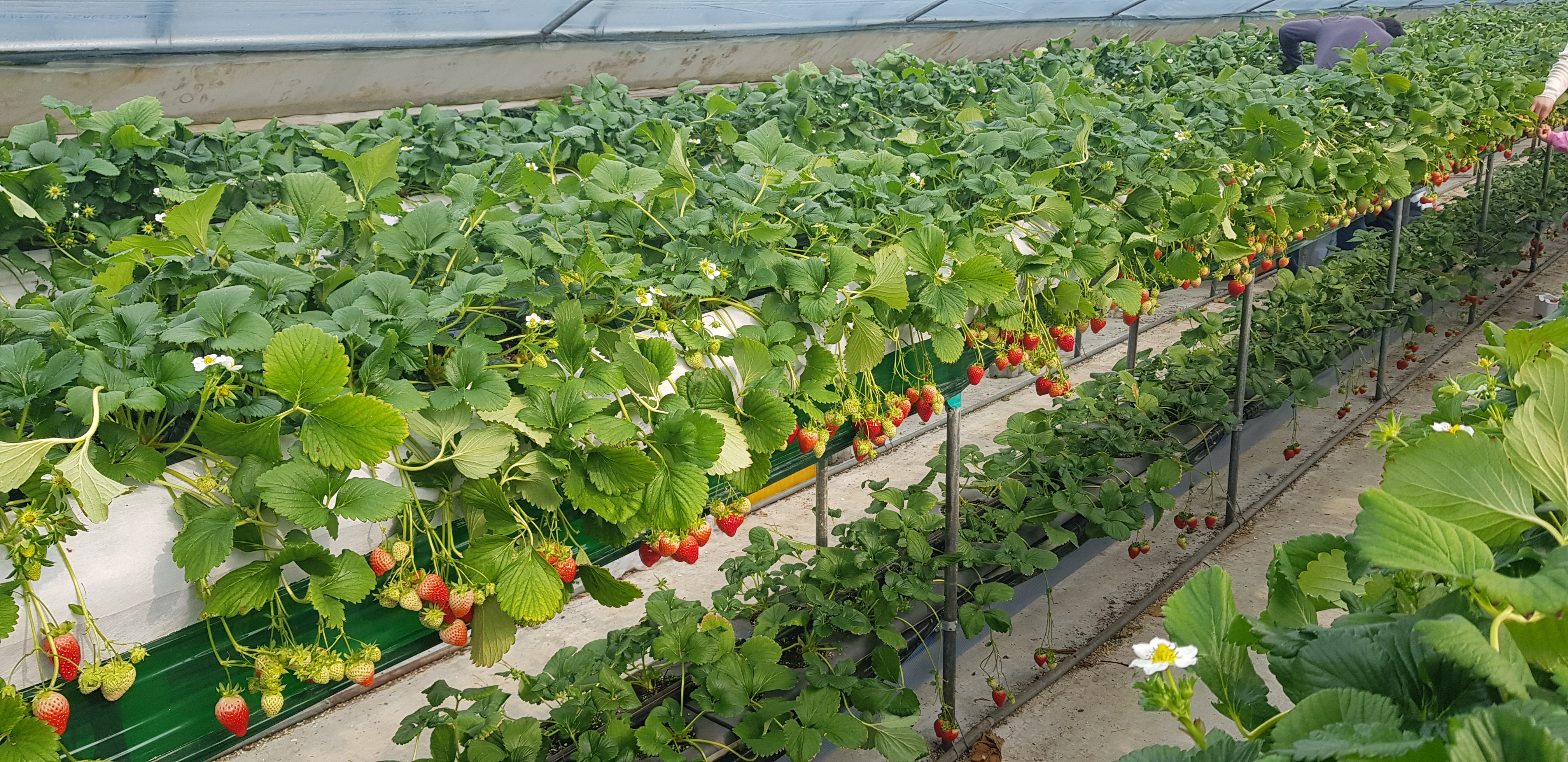 이렇께 쭉 길을 따라가면서 딸기를 따게됩니다.