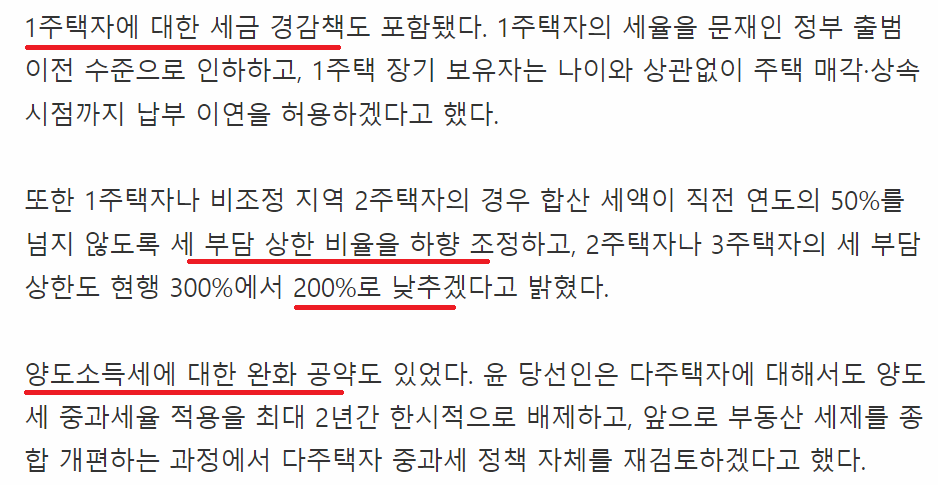 다주택자들에게도 과도한 누진세율을 완화하겠다는 뜻을 가지고 있습니다.