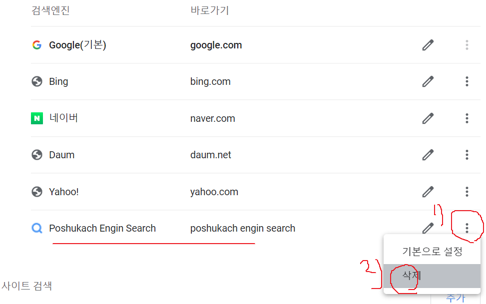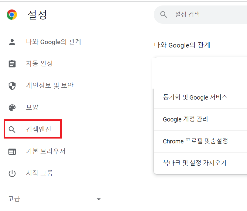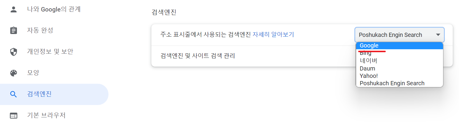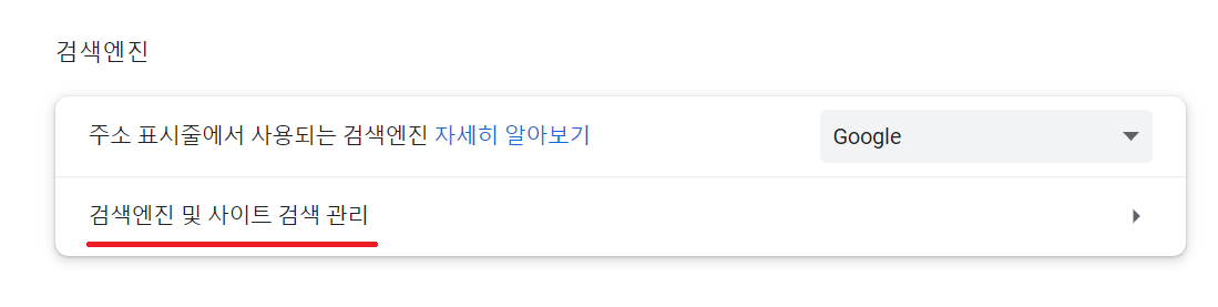 3) 그리고 아래와 같이 검색엔진 및 사이트 검색 관리를 선택합니다.