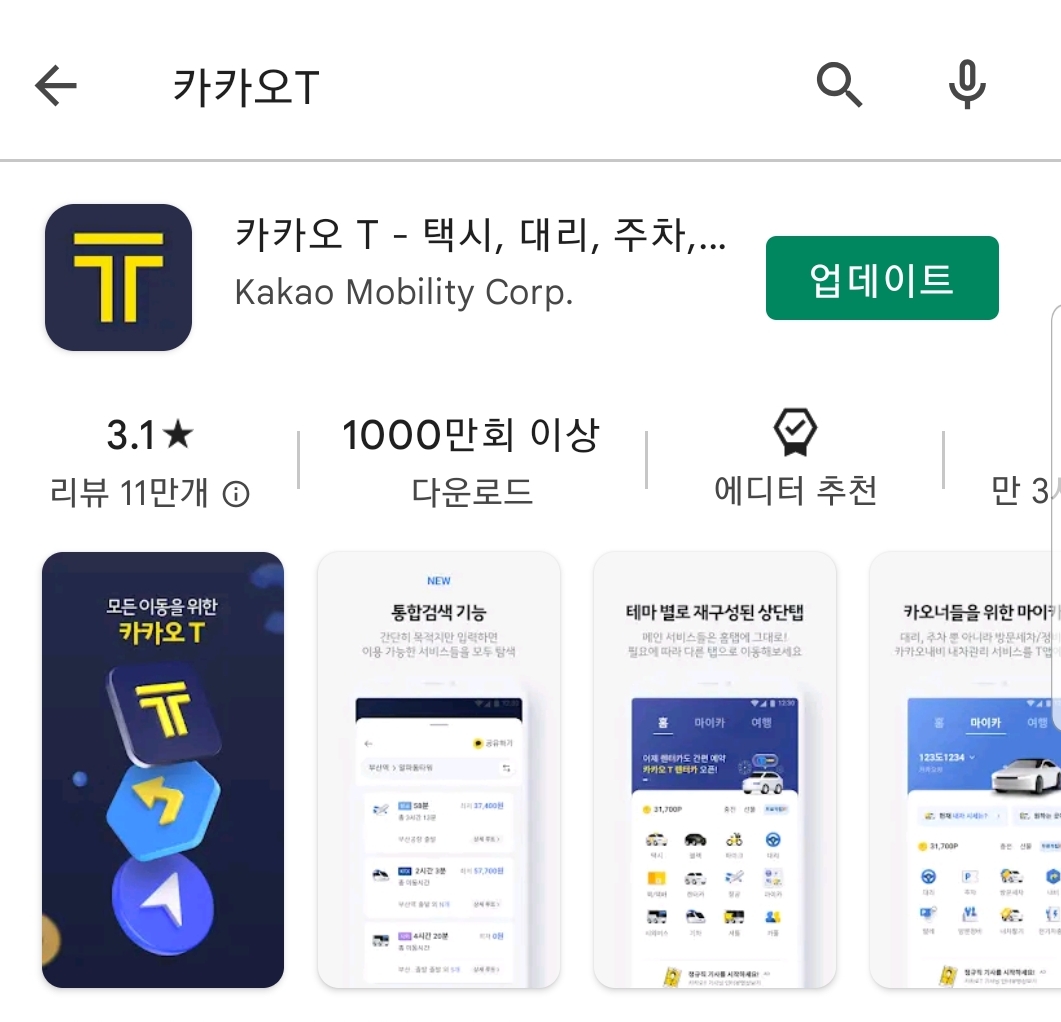 1) 카카오 T를 검색하여 설치해 주시기 바랍니다.