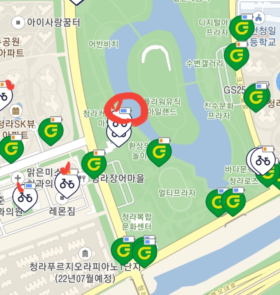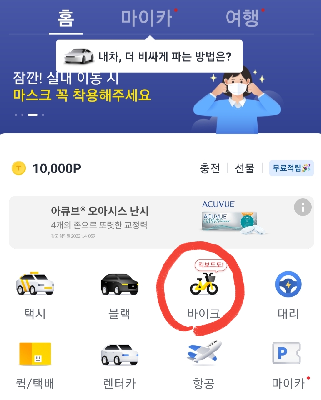 여기 바이크를 누르시면 자전거와 킥보드를 선택하여 이용할수 있습니다.