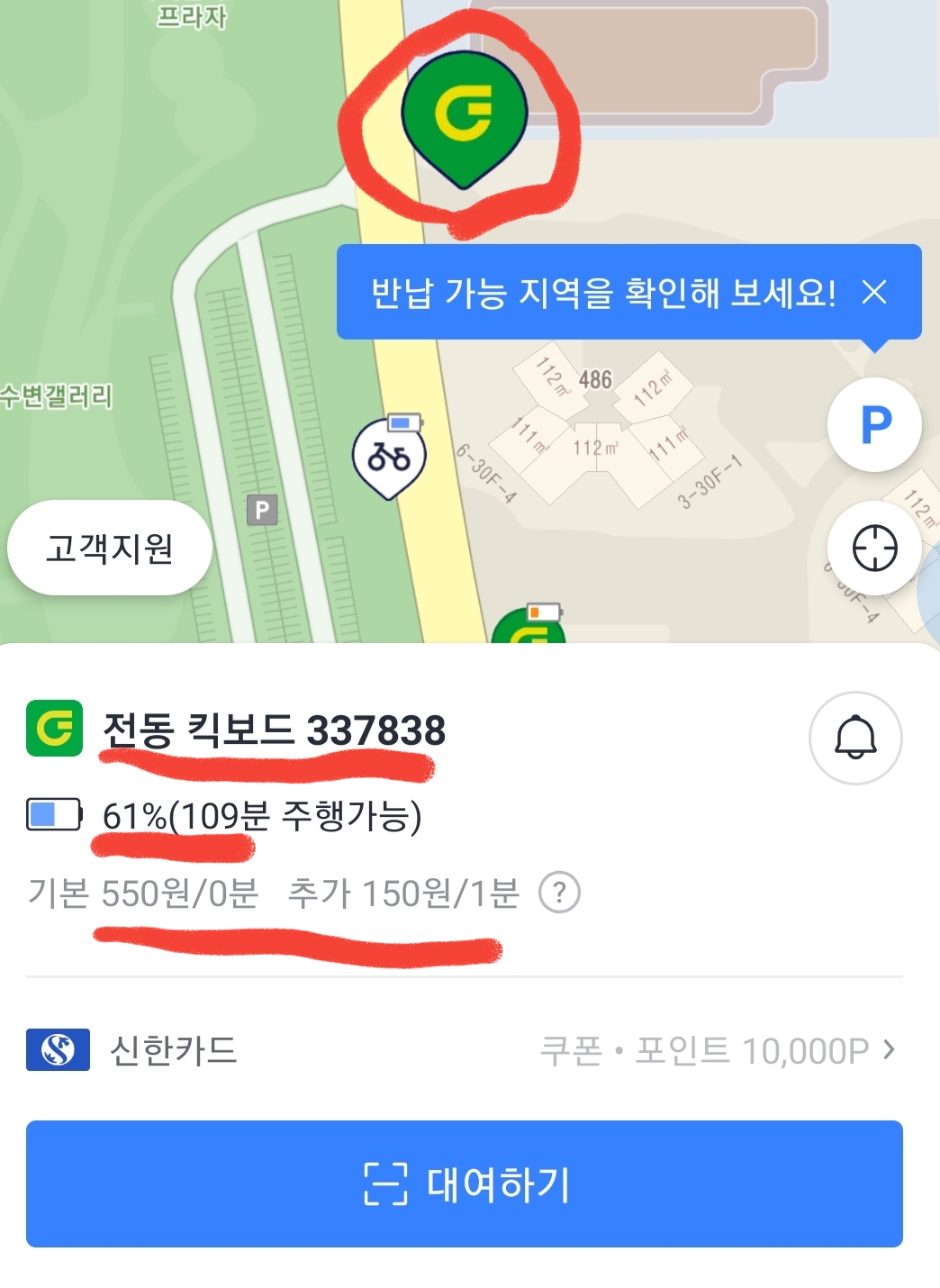 그곳이 반납가능한 지역인지 확인이 필요합니다.