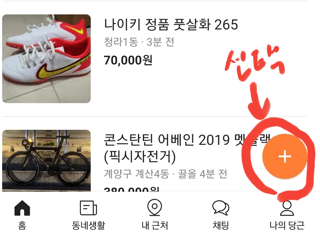 2. 이제 아래와 같이 나의 당근 위의 +를 눌러주세요.