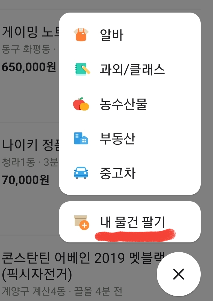 4. 이제 중고거래 글쓰기를 시작합니다.