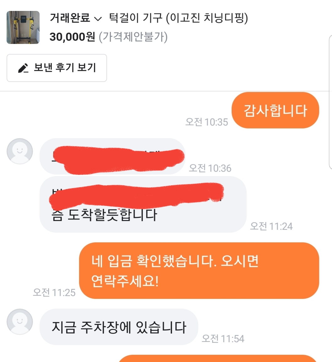 그리고 채팅을 통해서 제품을 전달받기 위한 장소와 시간을 이야기합니다.