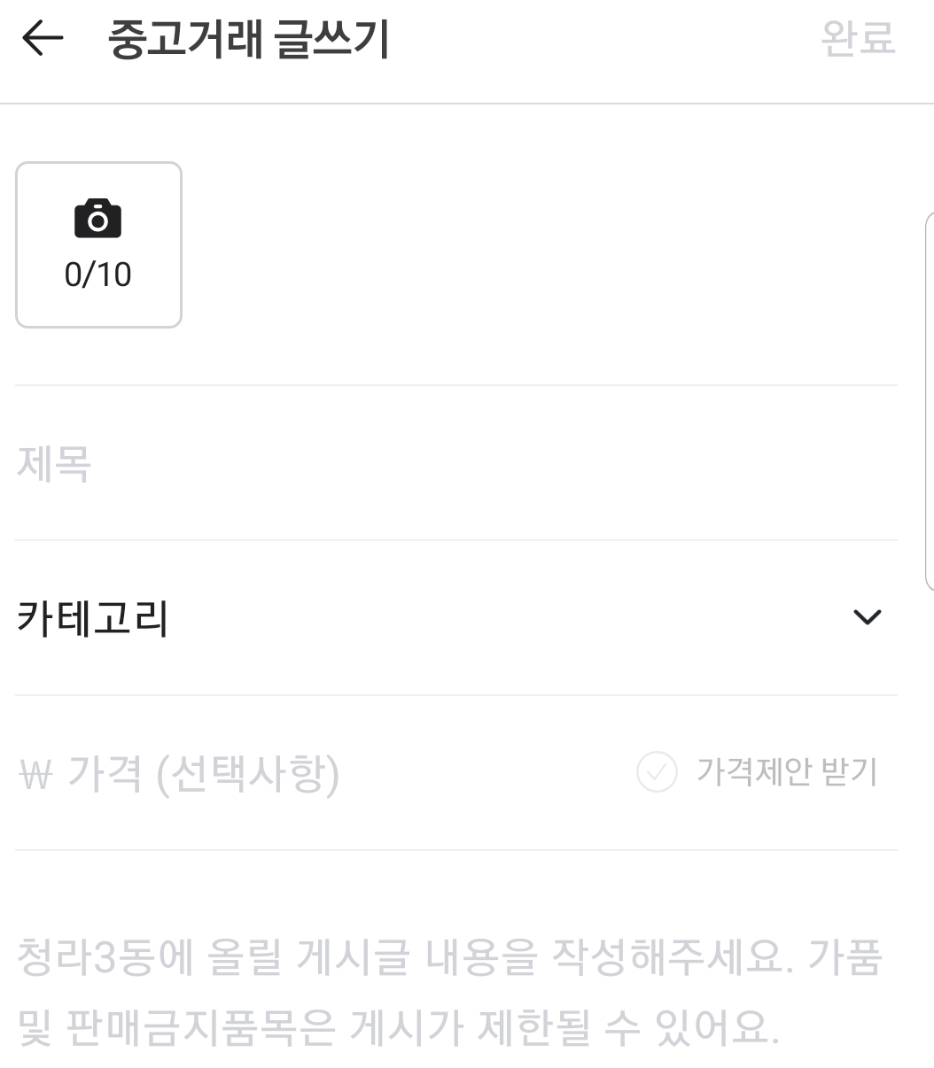 4. 이제 중고거래 글쓰기를 시작합니다.