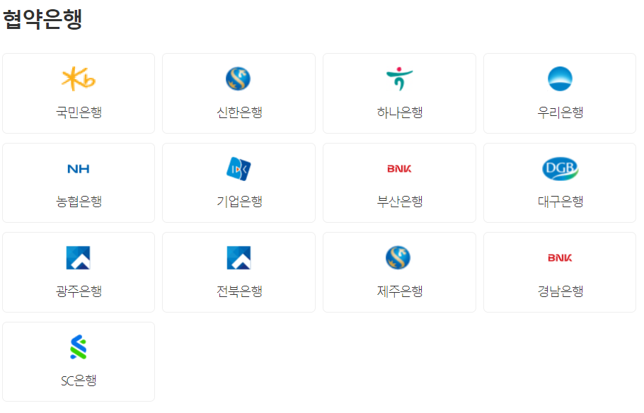 협약은행은 아래를 참고해주세요.