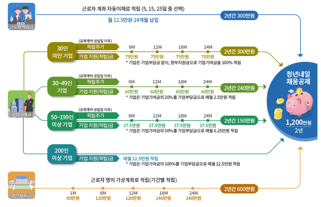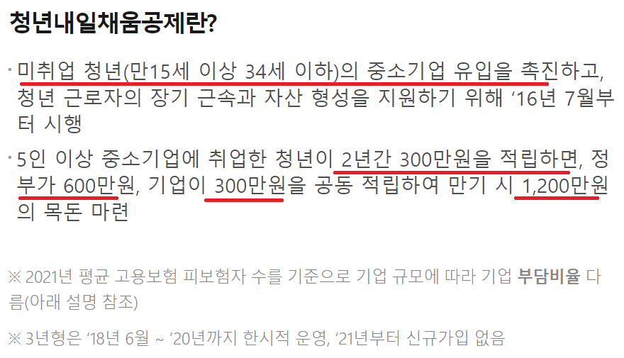 정부와 기업의 지원을 통하여 목돈을 마련할 수 있는 제도 입니다.