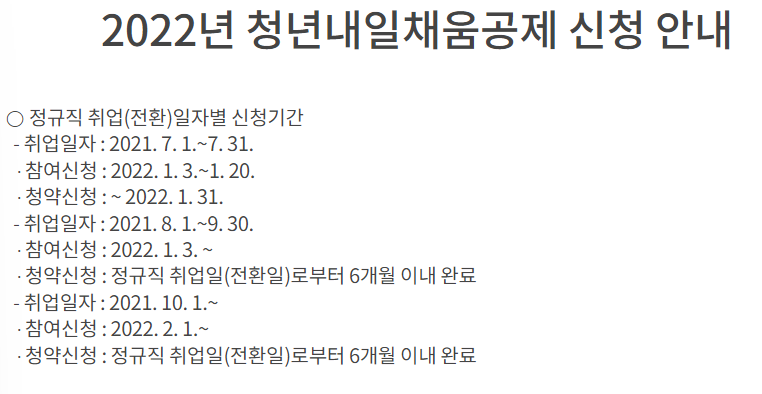 아래는 2022년 청년내일채움공제 관련 신청기간입니다.