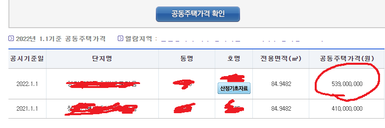 그리고 아래와 같이 현재 공동주택가격을 확인할수 있습니다.