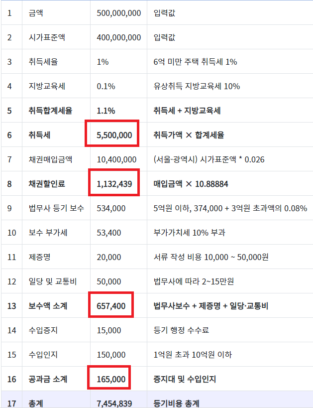앞서 말씀드린것처럼, 채권할인료 금액은 등기비용중 일부입니다.