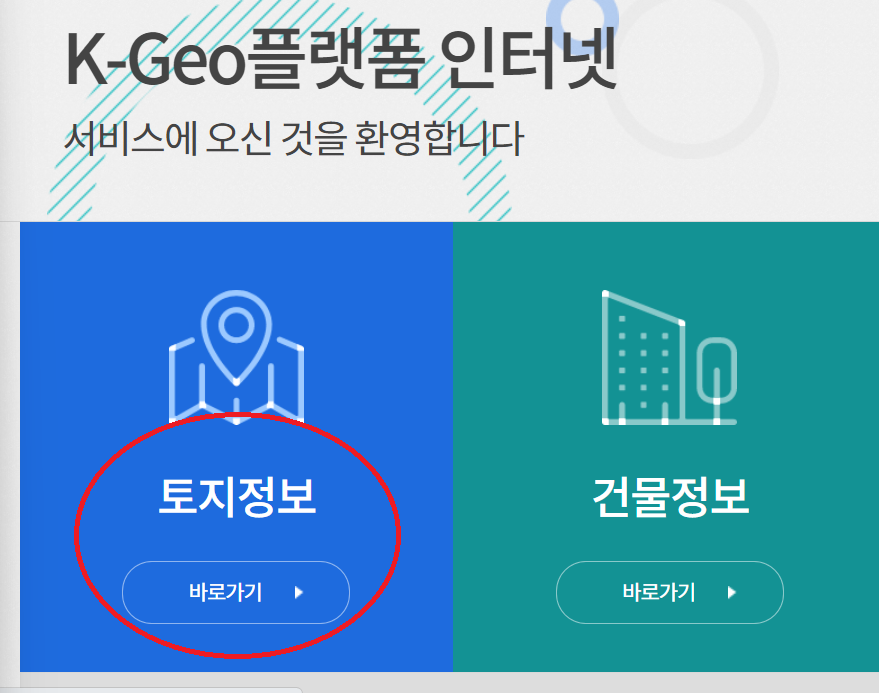 1) 위의 사이트로 들어가셔 아래 토지정보를 선택합니다.