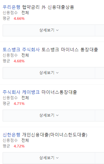 5월9일에는 마이너스통장 금리가 4.4%였습니다.