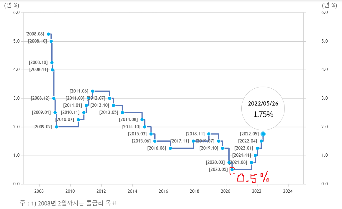 그런데 지금 현재 1.75%까지 기준금리가 올라갔습니다.