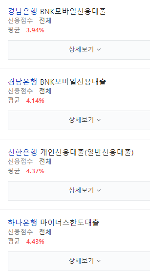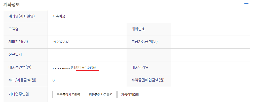 아래는 제가 개설한 마이너스통장 대출이율입니다.