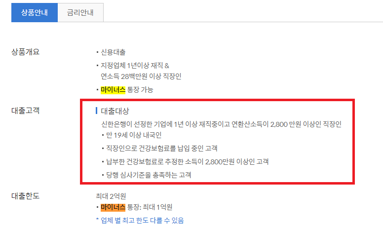 신한은행에서 직장인 신용대출을 찾아보도록 하겠습니다.