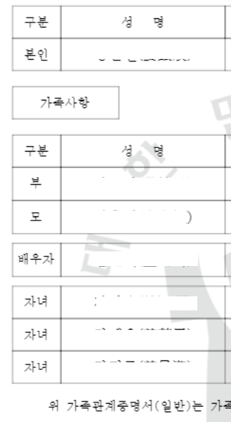 가족관계증명서는 본인과 부모, 배우자, 자녀에 관한 사항이 기재되는 증명서입니다.