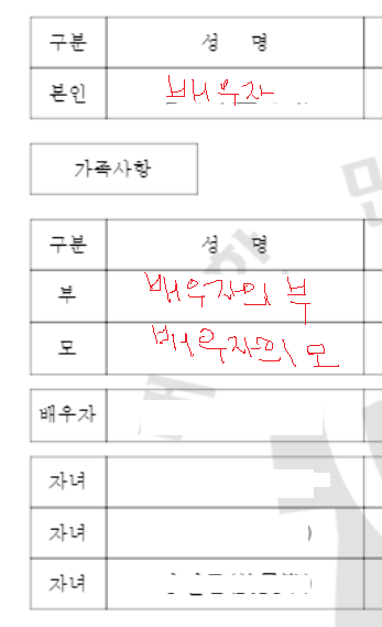가족관계 증명서에서 장모님, 장인어른이 빠지는 경우가 있습니다.