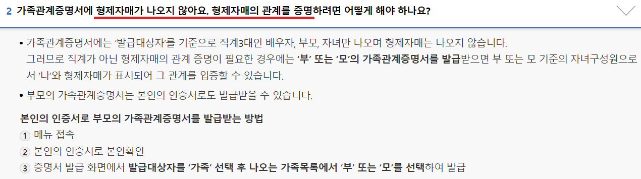 2) 형제자매를 증명하려면 어떻게 해야하나요?