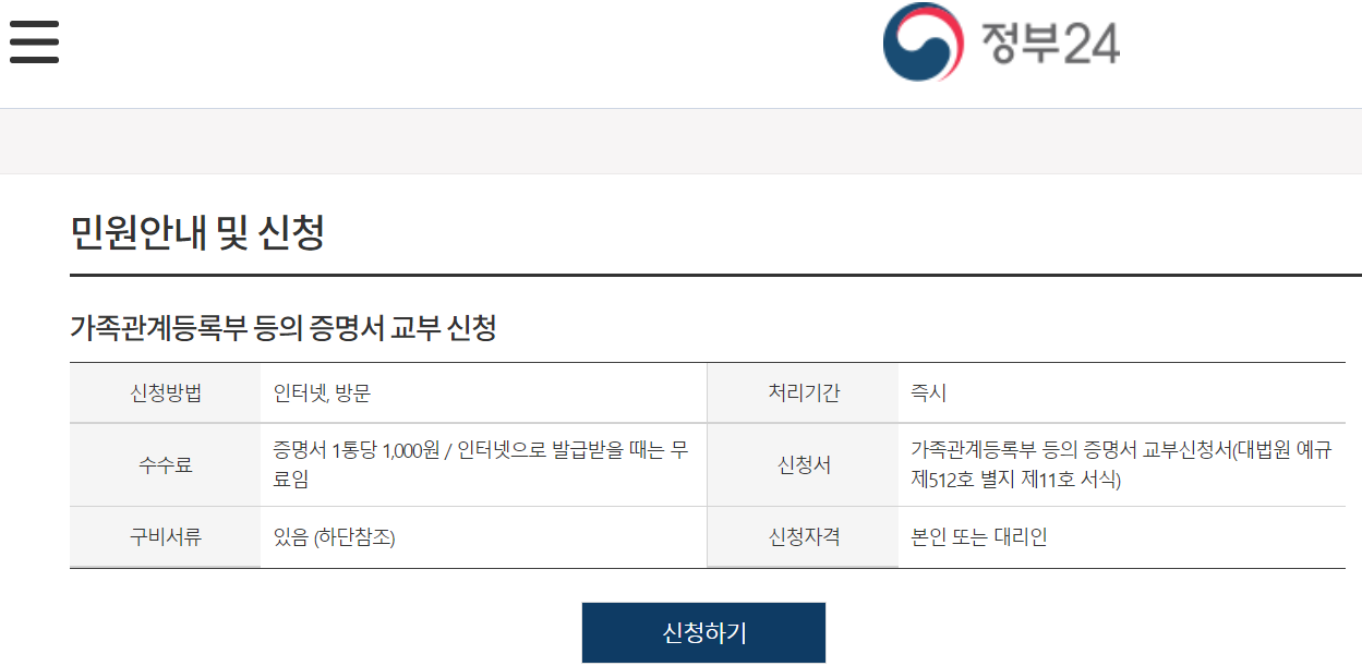 오늘은 가족관계증명서를 인터넷으로 발급받는 방법을 정리하려고 합니다.