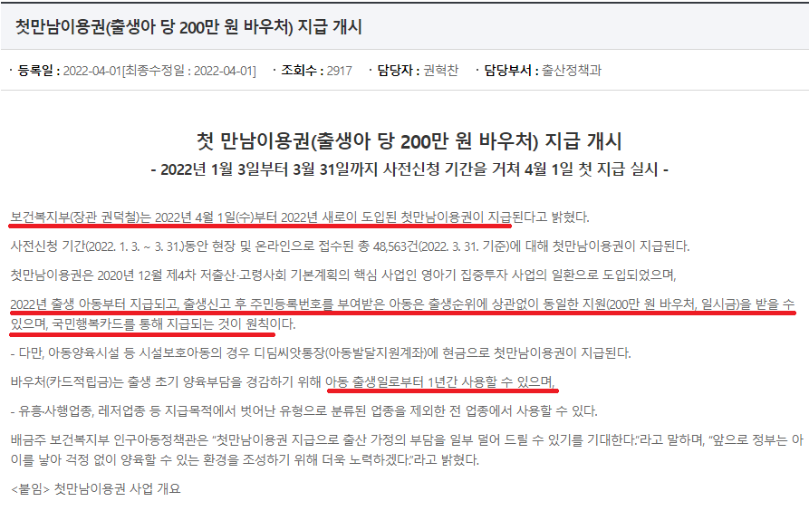 3월31일까지 접수된 아이들 기준으로 첫만남이용권이 지급됩니다.