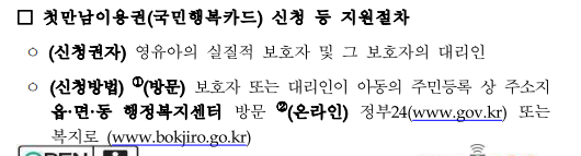 1) 보호자가 직접 인근 동사무소를 방문하여 오프라인으로 신청하는 방법입니다.