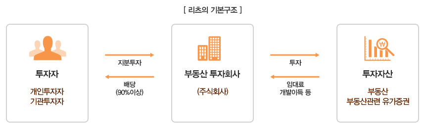 리츠는 소액투자자들의 자금을 모아 부동산 관련 증권등에 투자/운영하고