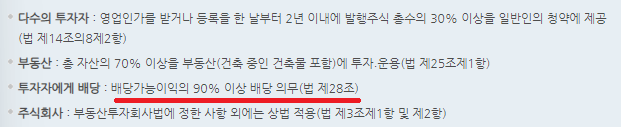 리츠는 배당이익의 90% 이상을 정기적으로 투자자에게 배당해야하는 의무를 가지고 있습니다.