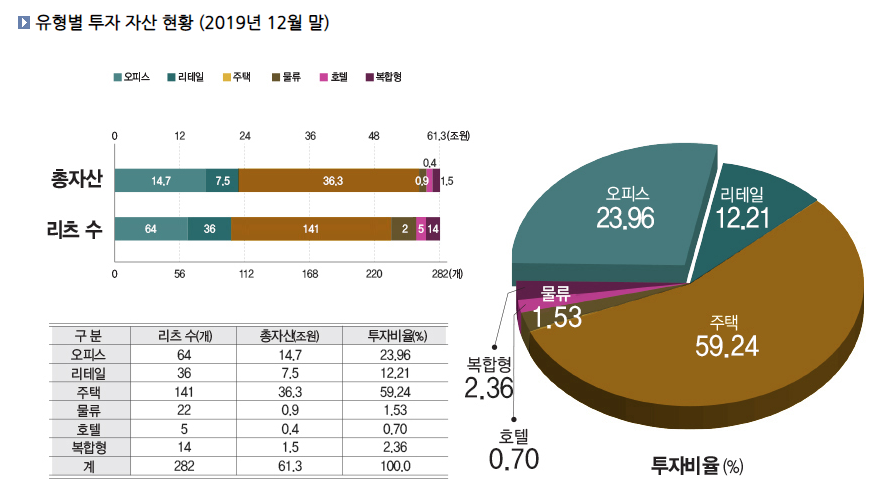주택과 오피스에 자산과 투자비율이 높은 것을 확인 할 수 있습니다.
