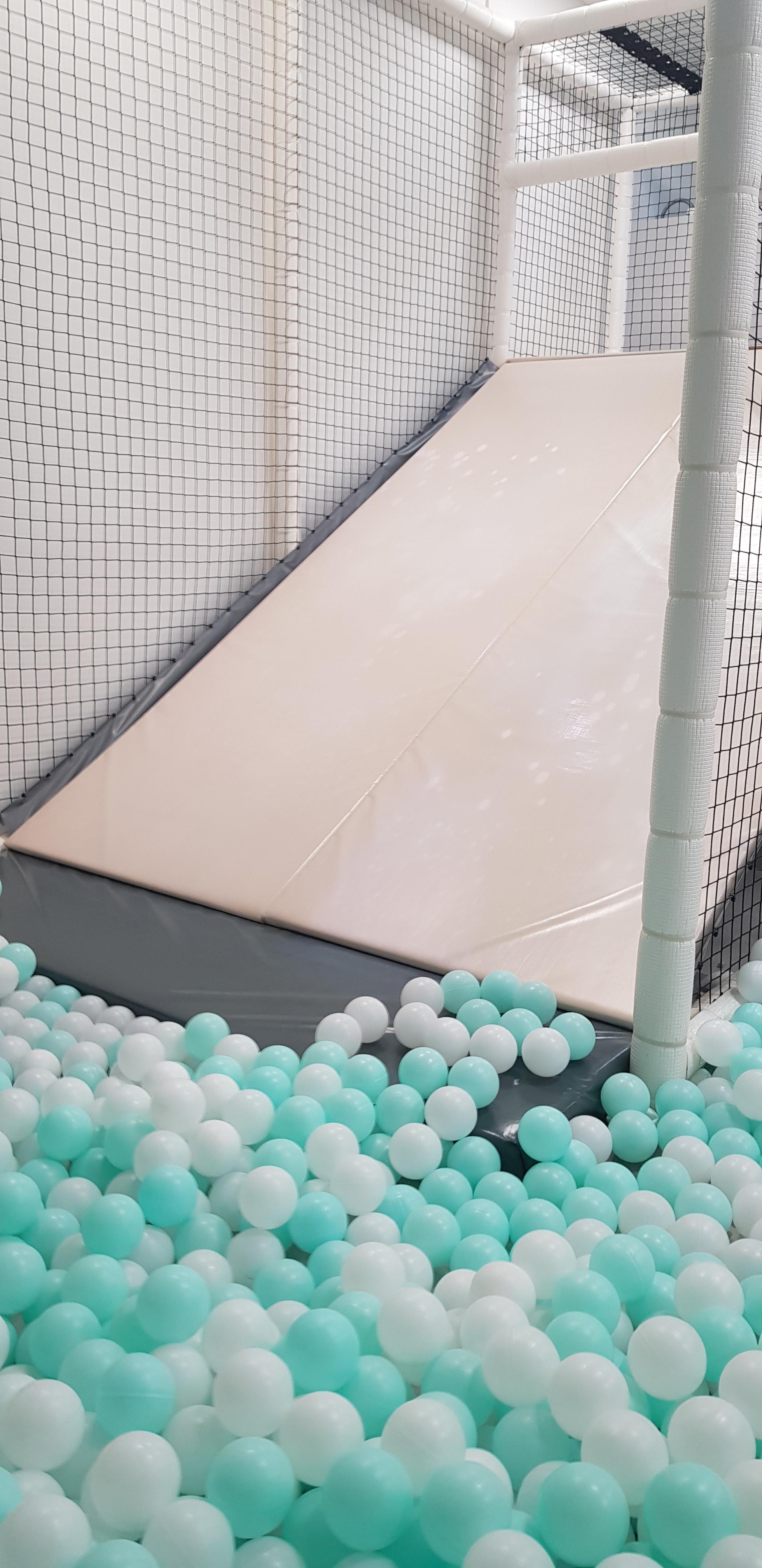볼풀장 옆으로 미끄럼틀이 있습니다.