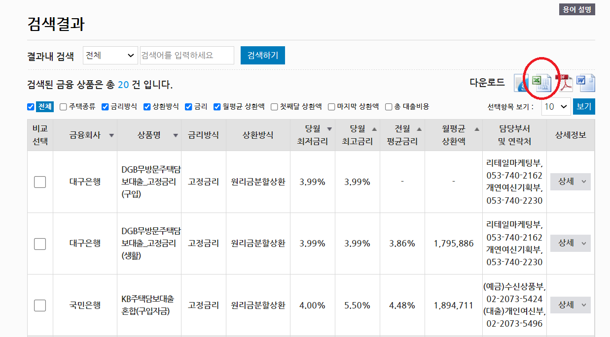 그렇다면 해당 금융상품이 아래와 같이 정리되어 나오는 것을 확인하실 수 있습니다.