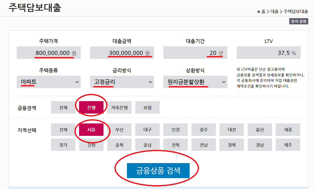 그러면 지금부터 고정금리로 주택담보대출을 한번 비교해 보도록 하겠습니다.