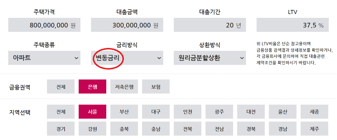 이번에는 변동금리고 확인해 보도록 하겠습니다.