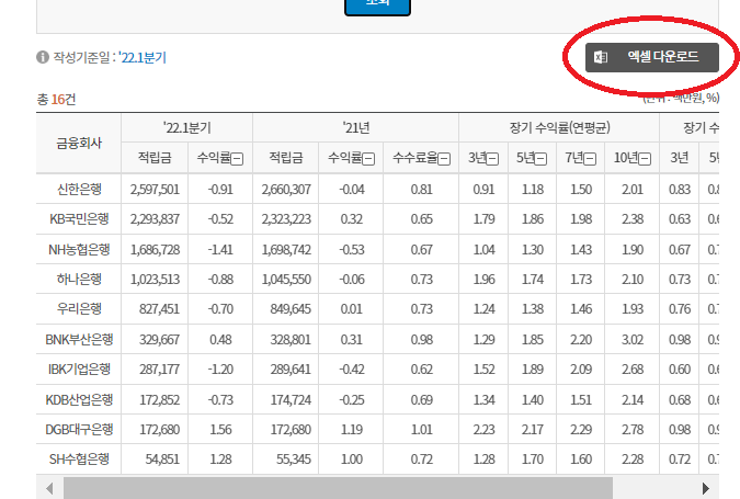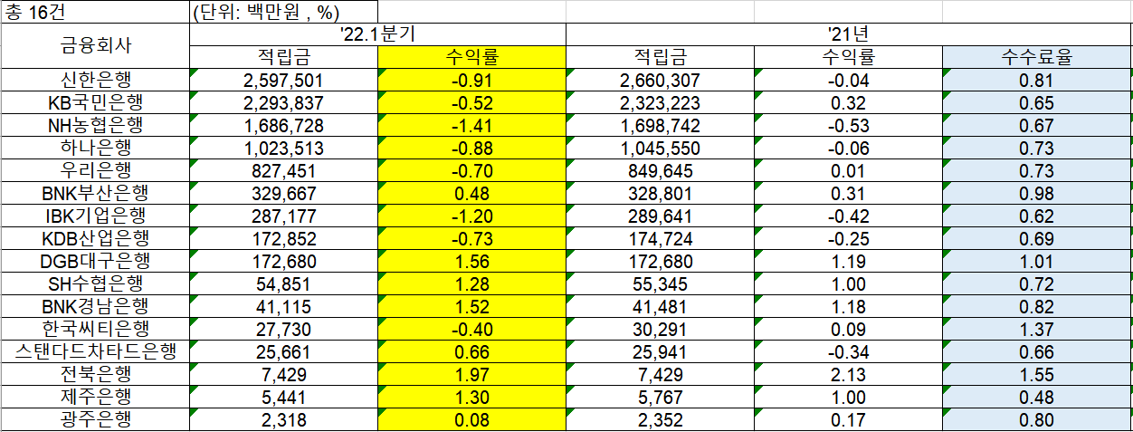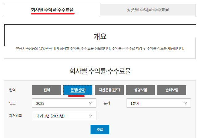은행의 수익률과 수수료율을 확인해 보도록 하겠습니다.