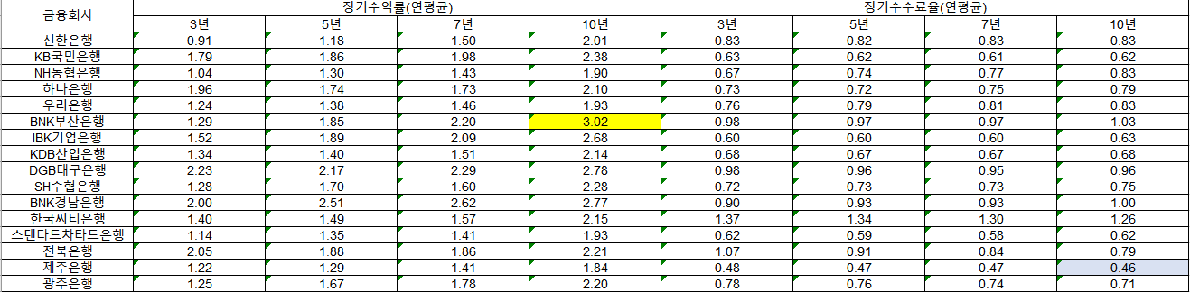 그리고 장기수익률과 장기수수로율은 아래와 같습니다.