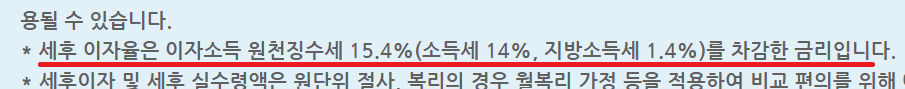세후는 은행에서 받는 이자도 엄연한 소득이기 때문에 세금을 제외하고 계산된 이자율입니다.
