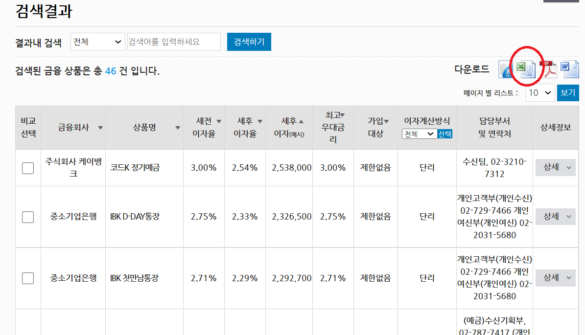 그러면 엑셀 파일을 다운받으셔서 전체적인 금리 비교가 가능해 집니다.
