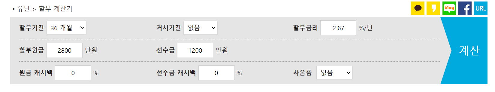 1) 자동차 할부계산기를 이용하여 계산합니다.