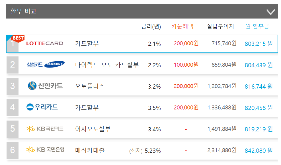 카눈을 통해서도 할부 비교를 할수 있습니다.