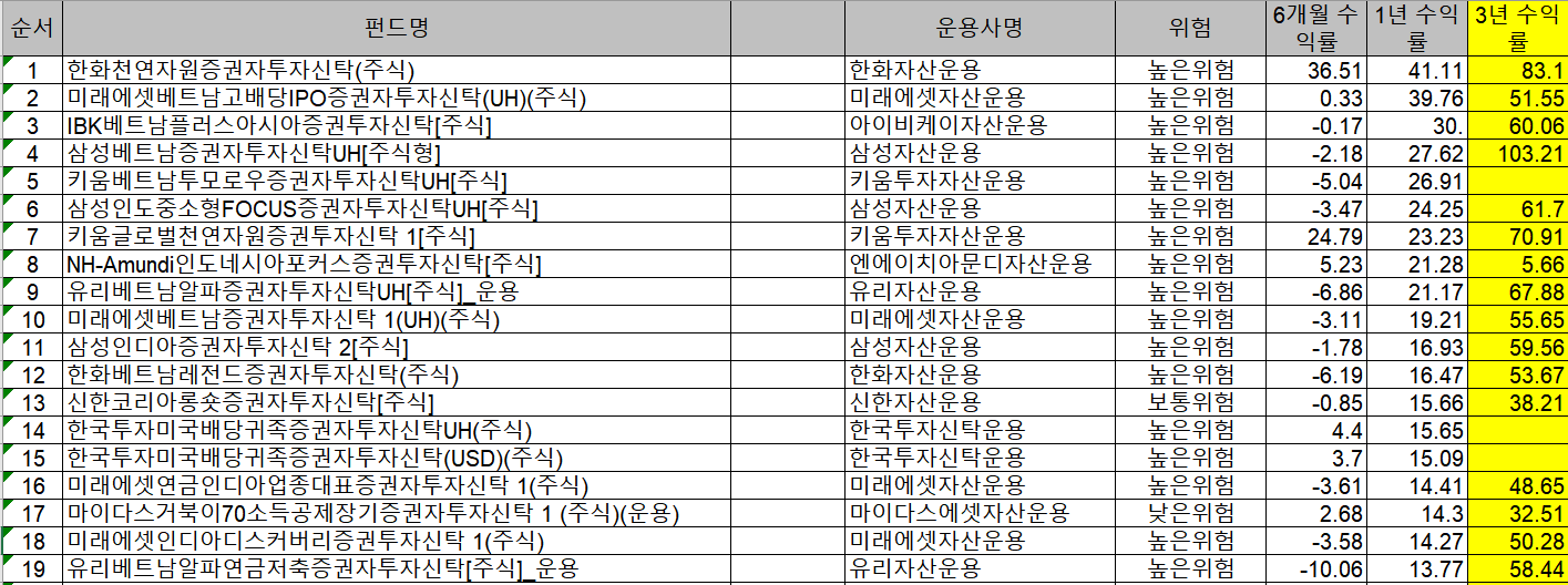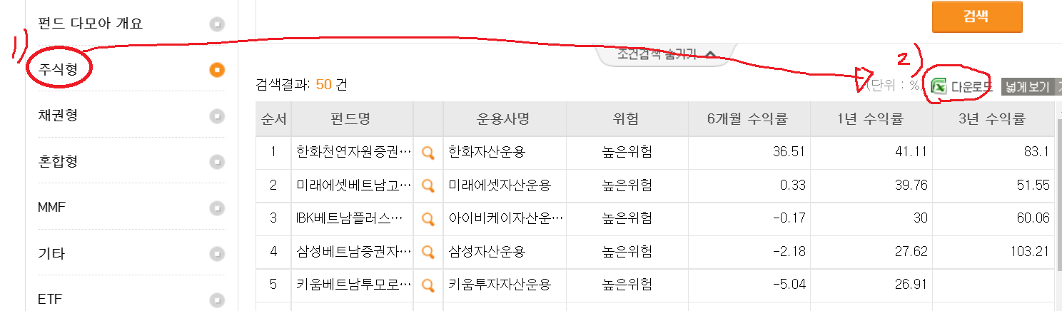 높은위험성을 지닌, 즉 주식투자가 많은 혼합형 펀드가 상위 있기 때문입니다.