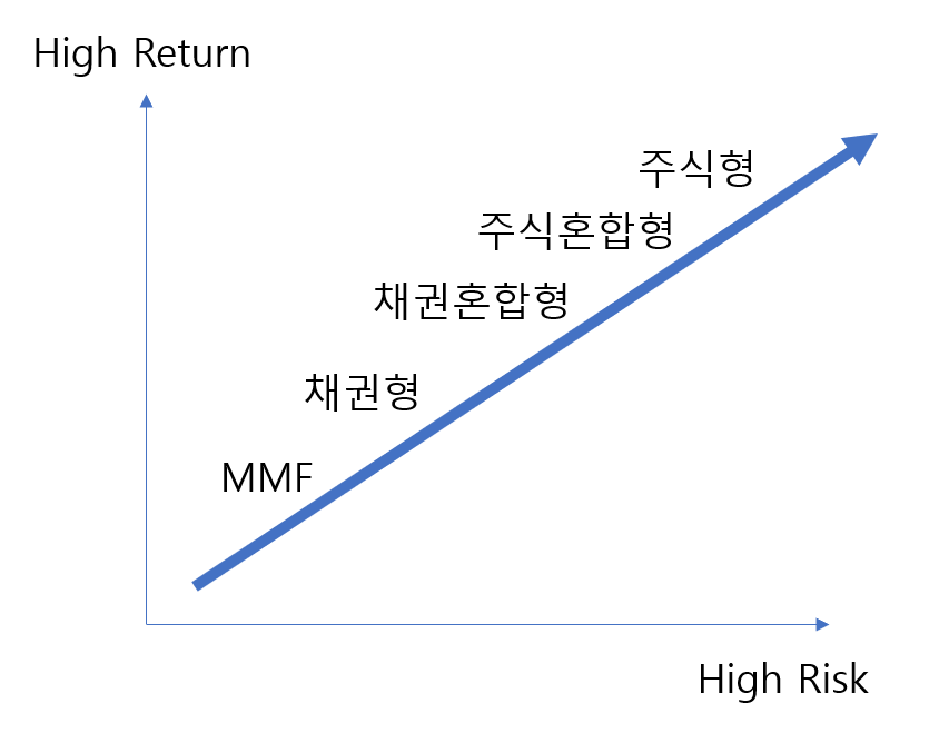 따라서, 수익과 위험에 따른 펀드를 아래와 같이 정의 할 수 있습니다.
