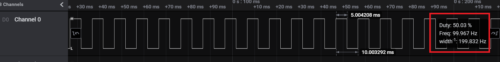 주파수 : 100Mhz에 Duty가 50%인 파형을 얻게 된것을 확인할수 있다.