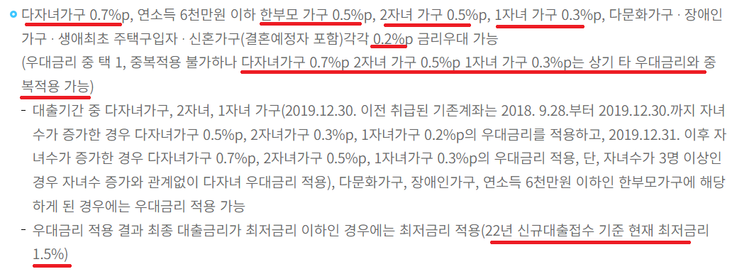 중복으로 다가구자녀 3명이상 0.7% 혜택을 추가로 받아서