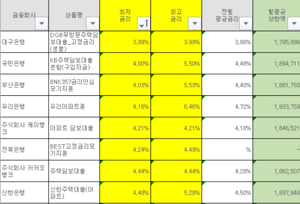 개인적으로 현재 주택담보대출 금리를 비교해볼때,