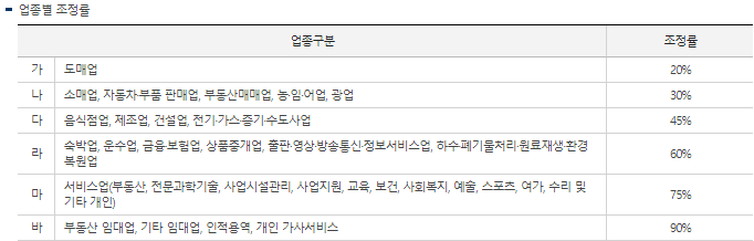 여기서 업종별 조정률을 적용할수 있습니다.