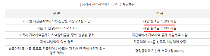 또한 만일 신청기간이 지나서, 2022년 6월달부터 신청을 하실경우 해당 장려금의 10%가 차감이 됩니다.