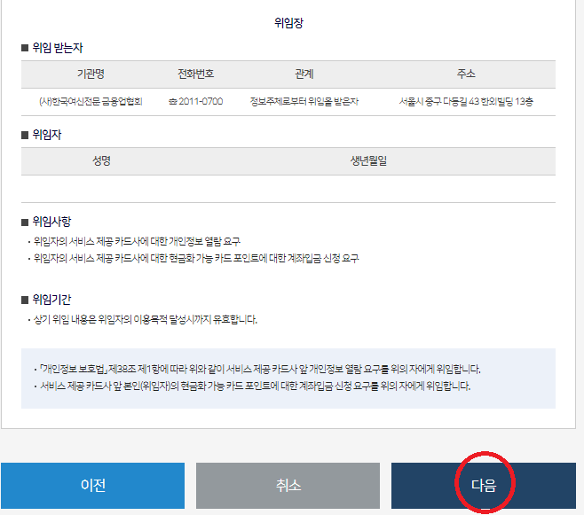 4) 인증을 마치면 아래와 같이 위임하여 포인트 조회하도록 확인하는 부분이 있습니다.