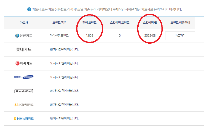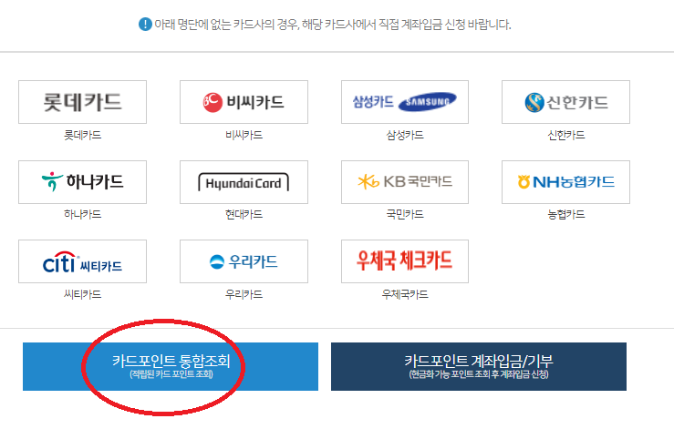 만일 은행별로 신용카드가 있으신 분들은 하나하나 카드포인트를 조회하는 것이