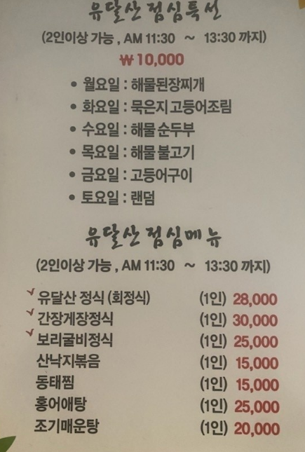 점심특선은 요일마다 바뀌니 참고하시면 좋을 것 같습니다.
